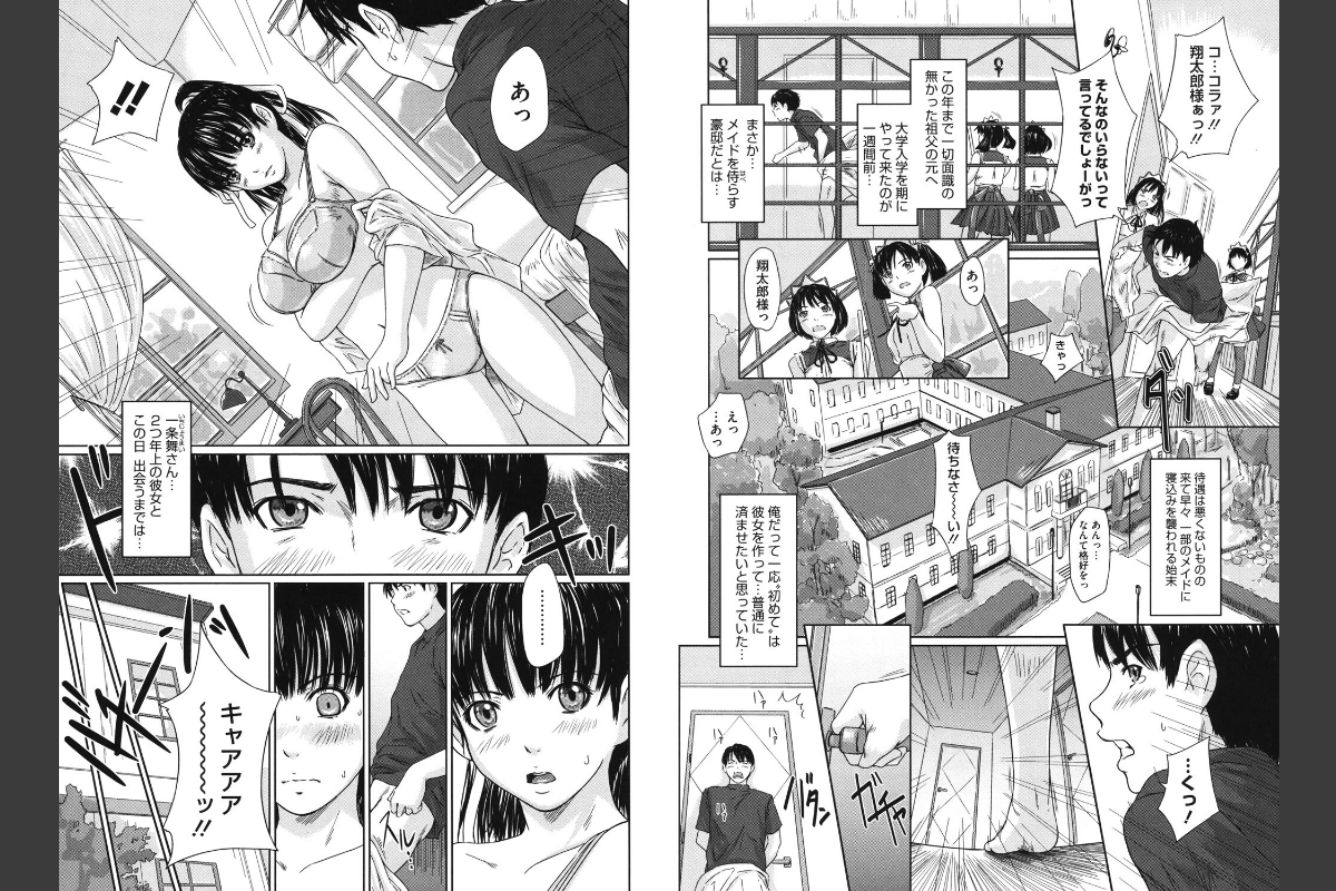 【アナタにご奉仕、しちゃいます】顔も知らなかった祖父を訪ねた翔太郎を待っていたのは、豪勢な屋敷と莫大な財産、そしてよりどりみどりの美女達にご奉仕されまくるハーレムだった!!超可愛いメイドさんたちが翔太郎の「専属」の座を狙って、朝から晩までエッチなご奉仕合戦!翔太郎のハートを射止めてチ〇コを独り占めするのは誰!?エッチはメイドのたしなみです!