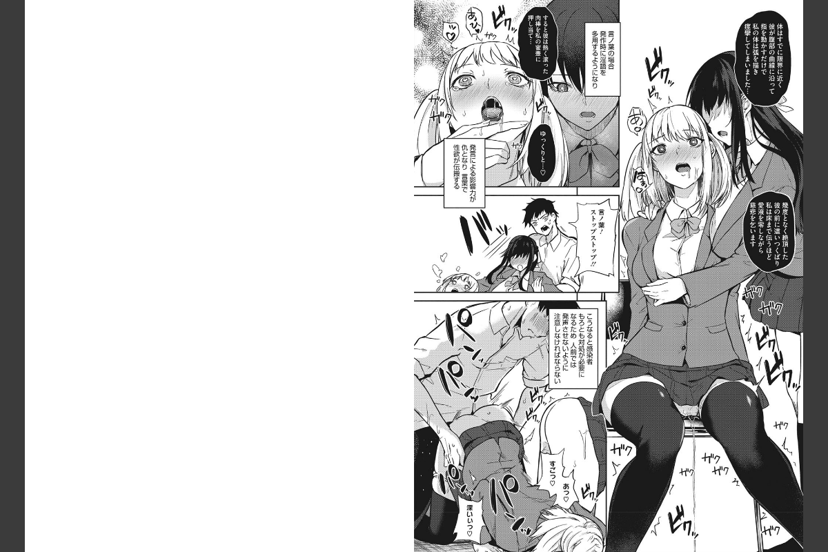 【パイデミック<おっぱい感染>が止まんねえ!】放送部の部長、言の葉桜は、朗読の天才であるのだが、その天才体質ゆえ、突如として強烈な性欲が沸騰し、性行為をしないと狂ってしまうという難病を抱えていた。淫語を叫びまくり、迸る欲情を解消する役目が周防先輩の肉棒。桜さんの性欲処理をしなければならない。 そして次々と才能ある巨乳JK達が発情発作に襲われて…… ――性欲が暴走するウイルス「ザクロ症候群」 偶然、抗体を持った主人公はいついかなる場所でも性処理に当たらねばならないのであった。 パイズリマスター・黒川おとぎは物語も進化してるんだぜ!<収録作品>ザクロ症候群 言ノ葉桜の場合・舞城ステラの場合・虎嶋香の場合・飯沼美羽の場合・薬研和の場合・終 前後編