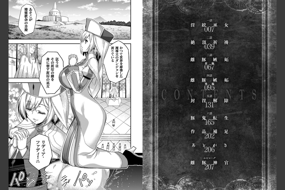 寝取られと純愛……巫女に課せられた人外の快楽地獄!!魔導王の遺産を狙う知恵あるオーク・ゲルドロリックスに強襲された精霊教会。遺産の封印の鍵を受け継ぐ巫女リディアは、自壊魔法を使い命を懸けて封印を守ろうとするが『絶頂することで封印が解除されていく淫紋』を刻まれてしまう。リディアは想い合う神殿騎士や同僚の巫女たちの前で人外の巨根に犯●れながらも懸命に抗い続ける。しかし、身体はどんどん気持ち良くなってしまい――。大人気オーク寝取られ物語が描き下ろしエピローグと作品解説を加えて待望の単行本化!【収録作品】『一話 淫紋巫女』『二話 絶頂祈祷』『三話 雌豚嫉妬 前編』『四話 雌豚嫉妬 後編』『五話 封淫解除』『六話 豚鬼転生『エピローグ 雌豚神官』※描き下ろし