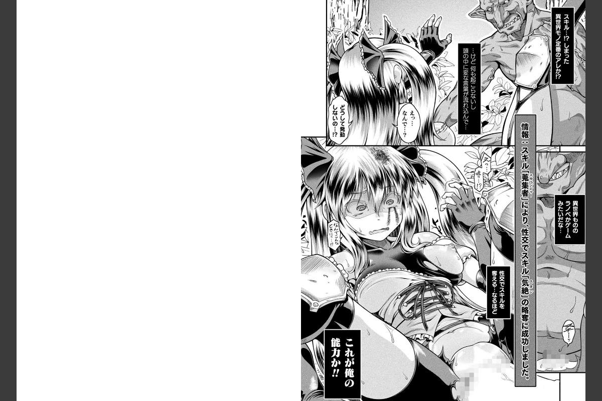名もなきゴブリンに異世界転生した青年がHで美少女のスキルを奪い●すシリーズ第1話! ある日突然異世界転生した青年は、ゴブリン退治にやってきた凄腕女剣士リリーネの目の前のゴブリンに転生し、いきなり絶体絶命のピンチに陥ってしまう。彼女に対して必死に命乞いをするも全く聞き入れてもらえず、それが現世で受けた仕打ちと重なり、恐怖よりも怒りが勝った彼は不意打ちの攻撃でそのままリリーネを倒すことに成功する。その後ゴブリンらしく倒れた彼女を犯し始めたところで意識を取り戻したリリーネから気絶のスキルを使われかけるも、青年が転生で得たスキルは性交で相手のスキルを奪うものだったため、逆に奪ったスキルでやり返して気絶させ、その後は衝動のままに陵●の限りを尽くすのだった……。