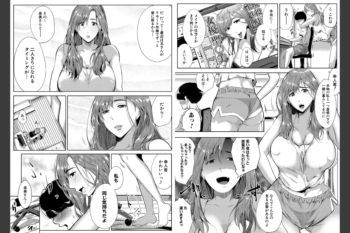 元アイドル女優の義姉と濃厚SEX!!両親を交通事故で亡くし、年の離れた兄と二人で暮らしてきた。兄が一生懸命頑張ってくれてるおかげで、普通に学校にも通え生活できている。普通の人と少し違う所があるとしたら、僕が大好きだった元アイドル女優――『聖 泉美』と、同じ屋根の下で生活している事だ。描き下ろし漫画14ページ付き!!「憧れは一つ屋根の下 アフターストーリー」※短編「交姦トライアングル」も収録。【収録作品】憧れは一つ屋根の下憧れは一つ屋根の下 2nd House憧れは一つ屋根の下 Last House交姦トライアングル憧れは一つ屋根の下 outdoorsあとがき【電子書籍の特典】紙書籍販売時の販促イラスト2点カバー表1イラスト(トリミング無し)カバー表4イラスト(トリミング無し)
