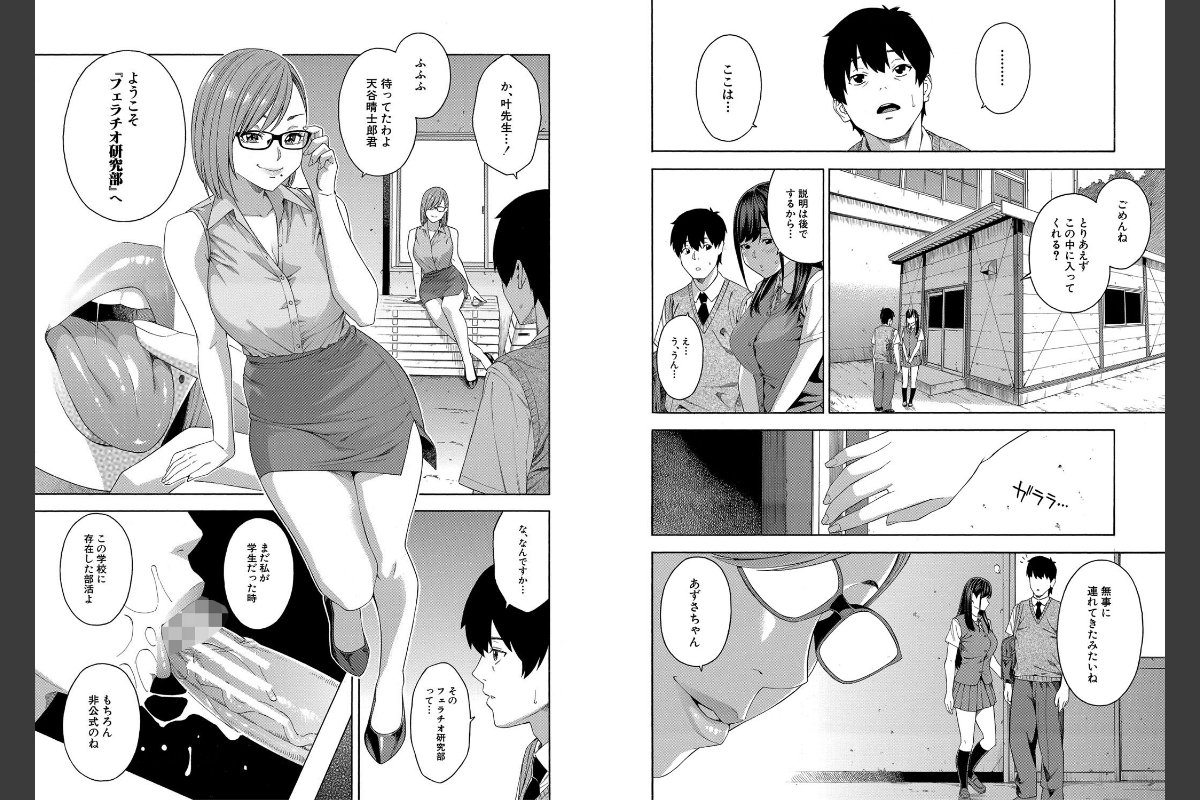 【内容紹介】おち×ちん舐めさせてくれない?おち×ちんは舐めて咥えてしゃぶるモノ!ようこそ!フェラチオ研究部へ!主人公・天谷晴士郎は、学園のアイドル・白雪あずさの事が好きだった。しかし高嶺の花である彼女に告白など出来るわけもなく、毎日彼女をオカズにオナニーをする日々を送っていた。そんなある日、あずさが「おち×ちん、舐めさせてくれない?」と滅茶苦茶なお願いをしてきて!?あずさに連れられてやってきたのは、かつて存在した非公式の部活『フェラチオ研究部』だった!ずっと好きだったあずさにチ×ポをしゃぶられて、あっという間に射精!!そして、フェラチオ研究部の部員達に朝から晩までしゃぶられまくる生活が始まるのだった…!【収録作品】フェラチオ研究部〈全5話〉フェラチオ研究部〈佳苗編〉(描き下ろし)【配信特典】メッセージペーパー&表紙・裏表紙の原画を収録!【FANZA限定特典】FANZAオリジナルメッセージペーパー付き!