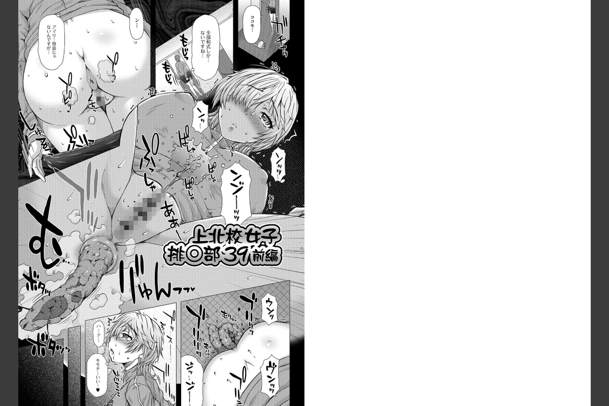 明るく元気な上北女子排〇部の女の子達が、色んなシチュエーションで視姦され身も心もヤラレちゃう、作者渾身の排〇女子凌●コミック!トイレは勿論、シャワー中や着替え中や公園のトイレでも女の子のもっとも恥ずかしく、激しく匂うシーンに拘り、完全激描写!ムチムチボディの金髪キャラが、元気で面倒見の良いキャプテンが、はち切れんばかりのお尻の谷間から、えもいわれぬ実体を捻りだす!ブルマお漏らし(勿論大きい方)最高!!みんな赤いブルマを内側から刺激臭と共に、醜く膨らすのだ!!!他には、黒ギャルトイレ前脱糞もの、校内一の知的美少女生徒会副会長の隠れたトイレでの排〇もあります。【上北女子排○部のみなさん、うん・うん・みーせて】【上北女子排○部 39前編】【上北女子排○部 39後編】【上北女子排○部 CAPTAIN!】【上北女子排○部 CAPTAIN!ファイト!】【上北女子排○部、そーれっつ!】【援助交排泄】【快便!開帳!副会長!】【スカドル★マスター】【催●便女 舞】【催●便女 舞、使用中】どれも健康的な巨尻からひり出されるものの存在感で圧倒される全11作品です!