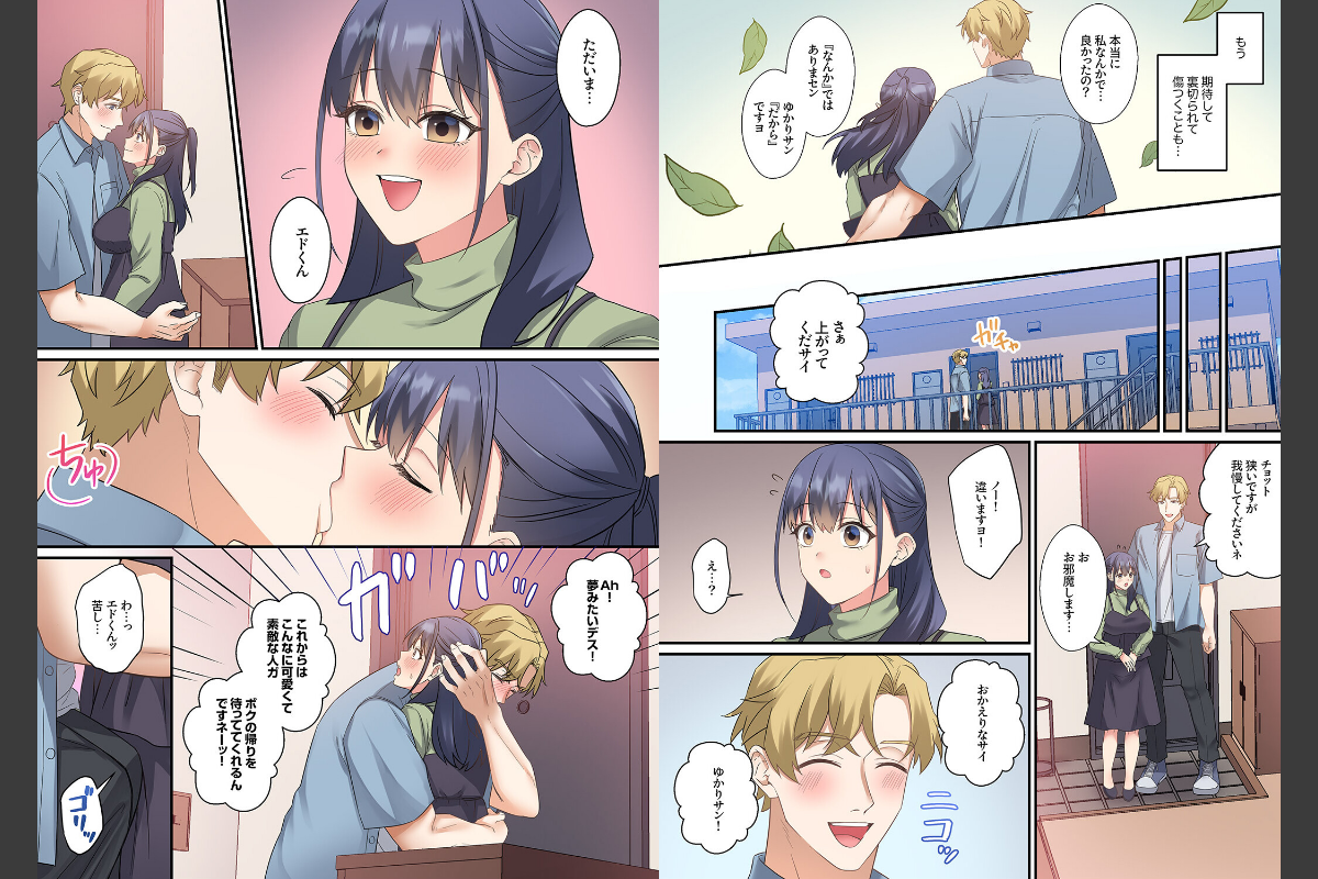 「ボクが旦那さんからアナタを奪って…ずっとイかせてあげますね…」――ある日の夜、主婦・ゆかりと夫・康秋(やすあき)、そして夫の同僚・エドと 3 人で宅飲みをすることに。しかし、早々に旦那は酔い潰れ、ゆかりはエドと二人きりになってしまう。優しくて聞き上手なエドの雰囲気に飲まれ、旦那との関係に悩んでいたゆかりは、自身が「レス妻」であることを暴露してしまう。すると「ユカリさんのコト、ずっと気になってマシタ」と大きな体で彼女を抱き締めてきて…!?さらには、我慢できなくなったエドが大きな手と太い指で胸を揉み、ア○コをグチョグチョに掻き回していき、ゆかりを盛大にイかせていく…。そして「早くアナタの中に挿入れたいデス…」と息つく暇もなくいきり立った外国人のソレをあてがい…!?