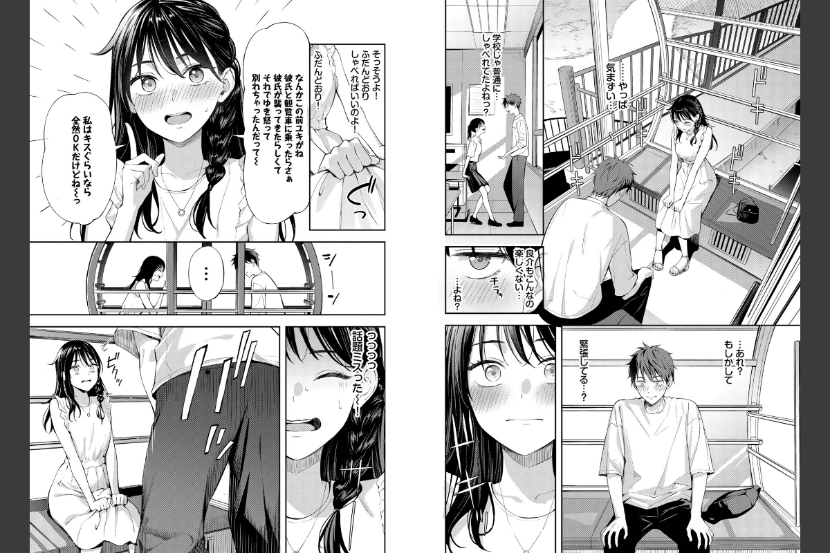 【ジンクスを吹っ飛ばせっ二人っきりの観覧車で急接近ドキドキ初体験♪】 大注目の美麗コミッカー・ふじざらしが描く、ウブな二人の上空密室イチャえっち! 初デートで観覧車に乗りにやってきた咲。なぜか彼氏の良介がいつもよりそっけなく、30分も観覧車に乗るという状況に咲は不安を感じていた…。緊張を紛らわすため普段通りに話をしようとする咲に、良介が突然キスをしてきて!?唇と緊張がほぐれてきた二人は、観覧車の中でこのまま終われるハズもなく!!絶景のなかで二人が抱きつき合いながらなん度もイキまくるあまあまセックスをご覧あれっ!