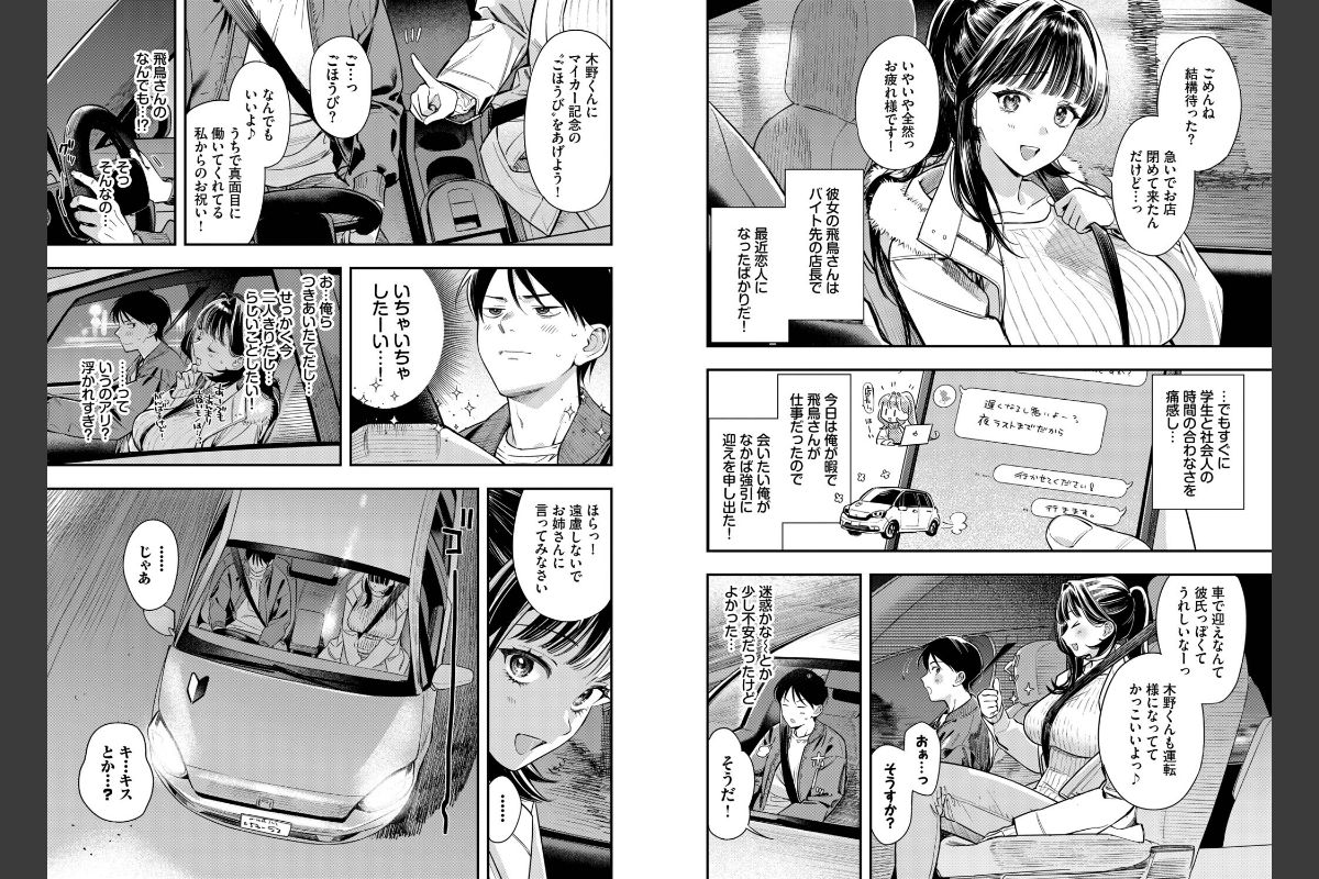 【お姉さんな彼女と車内で二人っきり…♪】美麗アオハル絵師・蛸田こぬが描く、車内でもお家でも…心音とけ合う超密着H!!最近できた年上彼女・飛鳥さんを車で迎えに来た主人公。飛鳥さんに頑張って貯めたバイト代で買った車のご褒美をくれると言われ、キスをおねだりすると「そこら辺で停めてくれる?」と言われて…!?車内で始まるゼロ距離エッチに興奮はMAXに! 密着騎乗位SEXにおねだり中出しHなどなど、リードしてくれる女性上位プレイをご堪能ください!!