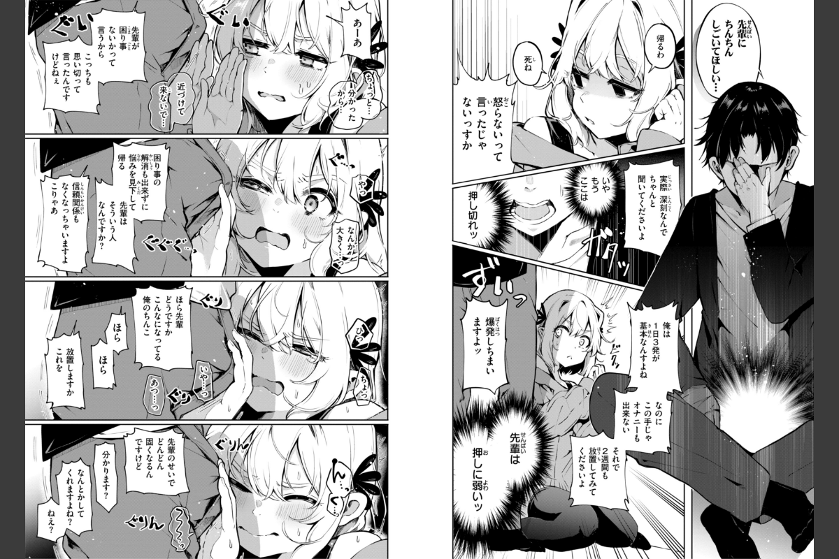 嫌々? 素直じゃない?? だからカワイイ!!!!!!!エロマンガグランプリ(仮)受賞者!!『COMIC快楽天』作家・ヤギコム、待望の初単行本!!カフェでバイトをしている亮平(りょうへい)はある日の仕事中、利き手に怪我を負ってしまう。このままでは日常生活に支障が出てしまう……。困った亮平が好意を寄せるバイト先の先輩・香椎(かしい)にご飯を作って欲しいとお願いすると、渋々ながら家へ来てくれることに♪他に何か困り事はないかと心配する香椎先輩へ《ち●ちんをしごいて欲しい》と最低なお願いをする亮平。当然ドン引きされるが……亮平は彼女の顔へち●ちんを押し付ける荒業に出る!!亮平は理解していた――香椎先輩が押しに弱いことを!!!!実は押しに弱い先輩女子を押して押してハメまくる『何だかんだいいながら』をはじめ、恥ずかしがりながらトロトロに溶かされちゃうチョロかわキュートな全8本ぎゅぎゅっと収録!!職場の巨乳後輩女子に手玉に取られ、生マンに完敗♪ ……『運の尽き?』欲望に正直なイトコのお姉ちゃんに貪られ……『ガマンできるカナ?』落ち込んでいる同僚の願いは《足コキ》……『調子コかせてリオ先輩』マジシャンとバニーガールの勝負!! カラダが熱くなってきて♪ ……『かかるかどうか』巨乳同級生の不正を目撃!! 口止めに誘われ種付けSEX……『それでも君には』険悪な元カップル。互いのキモチとカラダを晒して……『小牧は言いたいことがある』未払い家賃を踏み倒せ!! 大家をカラダで籠絡するはずが!? ……『モモノキ荘の住人』〈収録作品〉なんだかんだ言いながら運の尽き?ガマンできるカナ?調子コかせてリオ先輩かかるかどうかそれでも君には小牧は言いたいことがあるモモノキ荘の住人