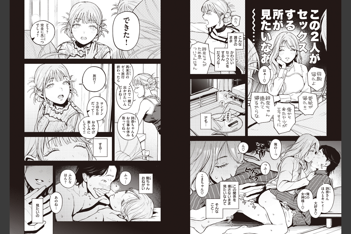 (私にはしないようなこと……もっといっぱい見たい♪)大好きな彼氏、大好きな妹。大好きだから、2人のSEXが見たい!!妹・愛絵(あえ)が海外旅行に行っている間、彼女になりすますことにした詩奈(うたな)。その目的は……妹として彼氏とSEXするため!?普段は優しく紳士的な彼氏は、愛絵に対してだけ気安く雑な態度。子どものように口喧嘩する2人なら、きっとかわいいSEXをするはず。関係を壊さないまま、二人のSEXを特等席で見たい……。そんな願いを叶えるため妹の格好で誘惑すると、想像以上に激しくされて……。