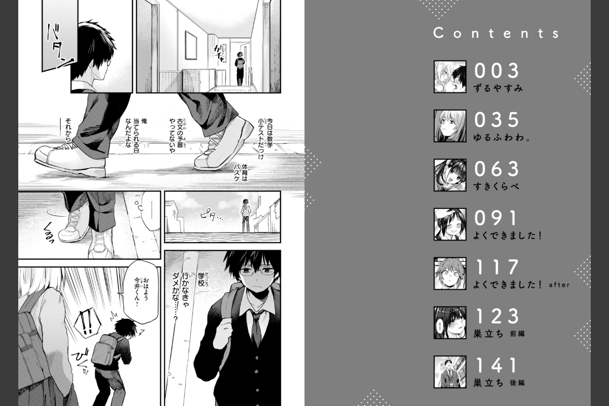 《デジタル版限定おまけで未収録漫画を追加! 単行本描き下ろしショート漫画は人気作品のスピンオフ♪》キュンとしてビンッてなるティーンズたちの等身大な性愛♪青春と、それに伴う欲求の機微を、リアルかつ丁寧に描き切る橙織ゆぶねの2nd単行本!!!!昂る鼓動が、性欲に変わる時。登場人物たちの想いが、溢れて交わる珠玉の作品集。〈収録作品〉『ずるやすみ』サボり魔ギャルの同級生から優等生くんへの甘美なお誘い♪ 正反対な二人がなんとなく心もカラダも通じ合って……。『ゆるふわわ。』マイペースな巨乳お姉さんはガッツリ肉食系♪ 導かれるまま筆おろしのあとは……欲望任せの中出し連射!!『すきくらべ』健気な地雷系純情ガール♪ 奥深くまで愛情をたっぷり注ぎ込んで、彼女をクズ男から奪え!!『よくできました!』『よくできました!after(描き下ろし)』友達のお兄さんに教えてもらって成績アップ♪ テスト結果を報告したら……《恋人》として存分に甘やかしてもらおう!!『巣立ち 前編/後編』一方的な好意を向けるがさつな幼馴染との嫌な思い出を上書きするように、告白してくれた優しいクラスメイトの精を求めるが……。★デジタル版限定おまけ★『ハメ撮りですけど?』最新スマホをGETしたカノジョのお願いは《ハメ撮り》!? フェラ、接合部、イキ顔……撮れば撮るほど益々大胆にエロくなっていき……!!