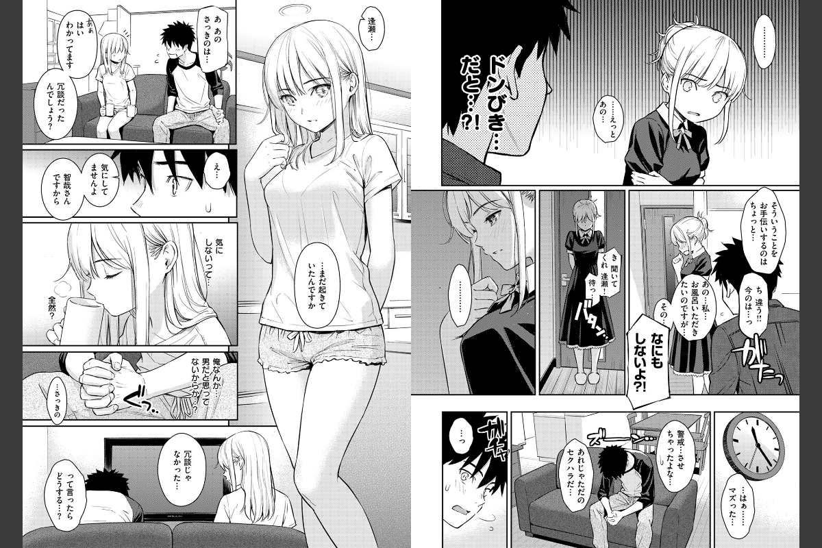 「七塚逢瀬(ななつかおうせ)です。お久しぶりです」実家から脱出して、一人暮らしを満喫していた春。海堂智哉(かいどうともや)のもとに、イギリスから金髪美少女の幼馴染みがやって来た!?心配性な親の手によって、突然初恋の相手とのルームシェアがスタートしてしまい、ドキドキしっぱなしの日々を送ることになってしまった智哉だったが、彼女とはそれなりに良い関係を築いていた。そんなある日の食事中、思わずポロッと逢瀬のことを女として見ている旨を伝えてしまい、ドンびきした彼女に逃げられ、気まずい雰囲気になってしまう……。己の発言を後悔する智哉だったが、お風呂あがりの逢瀬が側に近づいて来て、彼の体に積極的にボディタッチをし始め……!「母には…内緒にしてくださいね…」幼き日の一途な恋が実る、甘酸っぱい同居性活はじまります。