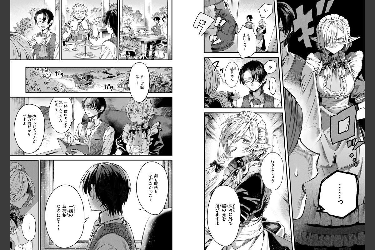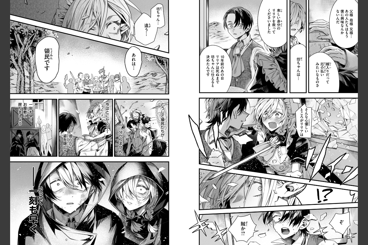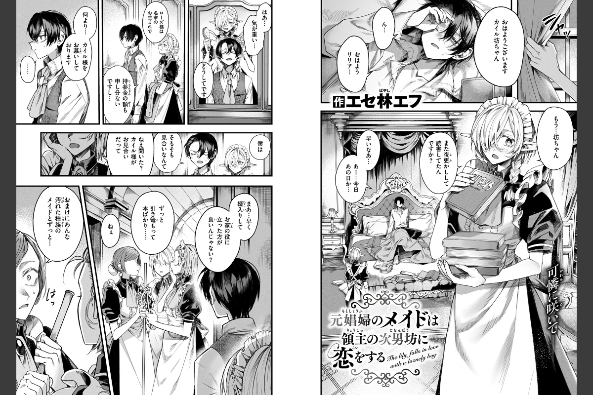 領主の次男坊・カイルに仕えるハーフエルフのメイド・リリア。路地裏で倒れていたところ、●●カイルに拾われ、それからずっと彼に仕えている。名家の娘との婚約を控え、見合いのため遠出するカイルとリリア。帰路に付く2人を待っていたのは、領民たちの一揆によって燃え上がる館と処刑された家族の亡骸だった。身を隠しながら、なんとか領地の外れにある宿へと逃げ込む2人。嵐が過ぎ、二人だけが部屋に残る。領主の息子とメイド。身分の違いから、お互いへの想いを抑え続けていたカイルとリリア。お互いを分かつものがすべて燃え尽きた今……現実から逃れるように2人は肉欲に溺れ、貪り合う――新星・エセ林エフが描く、すべてが燃え落ちた末に芽吹く、禁じられた恋の物語。