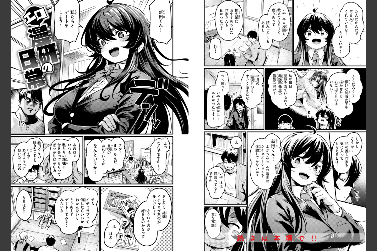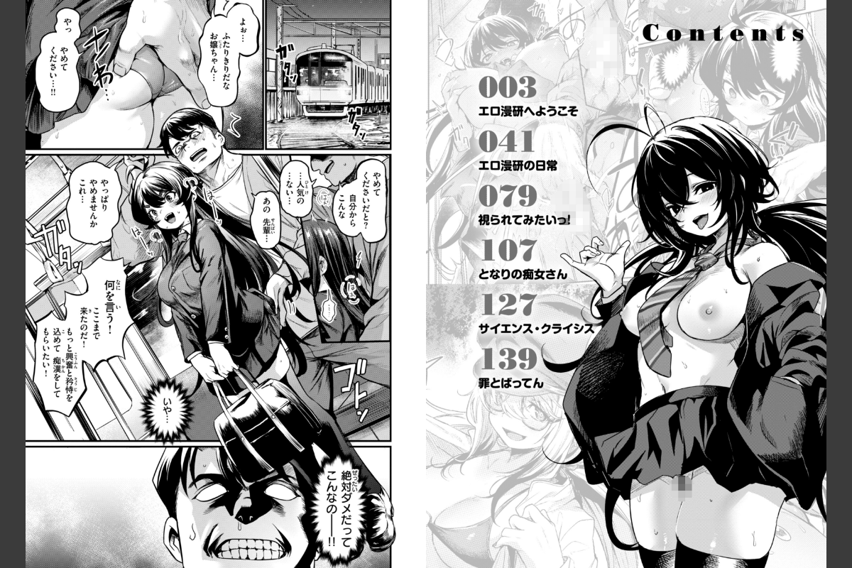 ★レアな『初期設定資料』のおまけ付き!! 単行本版の加筆・修正で磨きのかかったエロさを体感せよ★貞操観念ゆるゆるでコミカルなストーリーと、ムッチリボディが揺れまくる大迫力SEX!!エロ漫画の《実践プレイ》がた〜っぷり見れちゃう刺激的すぎる一冊っ!!★デジタル版おまけ★巻末に初期設定資料を収録! 初期プロットから、あらすじ漫画までまるっとお見せします!!『エロ漫研へようこそ』『エロ漫研の日常』漫研志望の新入生・新田(あらた)がまぎれ込んでしまったのは、《漫研》ではなく《エロ漫研》。良くも悪くも個性が炸裂している先輩たちに囲まれて、最初はとまどいつつも、徐々に居心地の良さを感じていき……。そして始まる、先輩女子相手の怒涛の《エロ漫画の実践プレイ》!?!?『視られてみたいっ!』エロ配信女子・茜(あかね)には、ある願望があった。「SNSだけじゃなくて直接、裸を見られたい…!!」という願望が。そんなある日、バイト先のコンビニに現れた超コワモテの男・鮫島(さめじま)。男はどうやら自分の配信の熱烈なファンらしく……。願望をかなえるため、茜はある決心をする…!!他にも、・隣の席の女子が積極的でエロすぎるッ!? 『となりの痴女さん』・オンナ博士と助手がエッロい新薬で…!? 『サイエンス・クライシス』・お金だけの関係性…だったのにエロチ●コが大暴走!? 『罪とばってん』などなど!!読ませてヌカせる良いトコ取りな、サイコーの《エロ漫画》世界に飛び込める作品集です!!〈収録作品〉エロ漫研へようこそエロ漫研の日常視られてみたいっ!となりの痴女さんサイエンス・クライシス罪とばってん