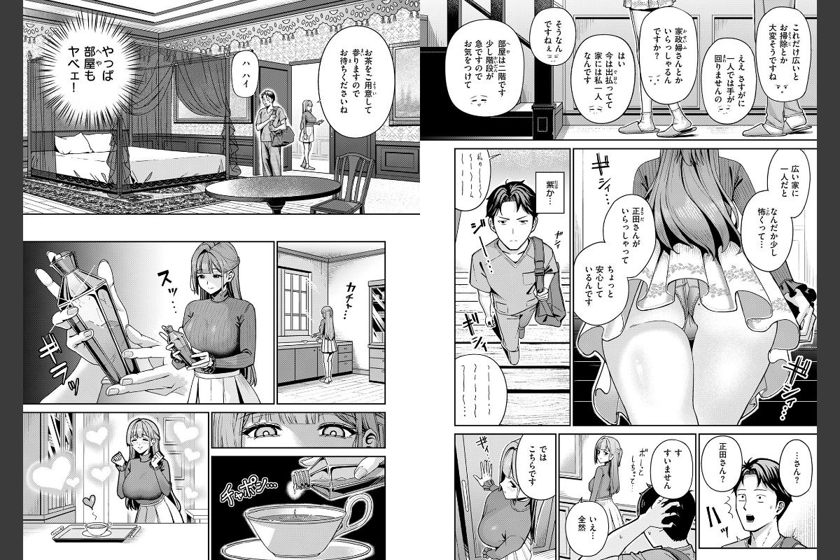 俺は独立したての訪問マッサージ師。新規顧客の家に向かうと、そこは大使館と見紛うばかりの大豪邸!こんな家に住むお客さんを常連にできたらと、胸踊らせてインターホンを鳴らすと出てきたのは、巨乳で美人なお姉さん!! しかも何だか隙だらけ!?お茶を頂いて、さっそく施術を行おうとしたら、なぜかお姉さんはネグリジェ姿に着替えてきて……。ドキドキしながら、その豊満な身体を施術していくと…なんだか股間の勃起が収まらない!もしかしてあのお茶に何か……。優良顧客を捕まえたのは、いったいどっち?ムチ感あふれる濃密エロス! 「XD田中」堂々デビュー!!