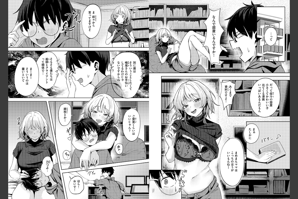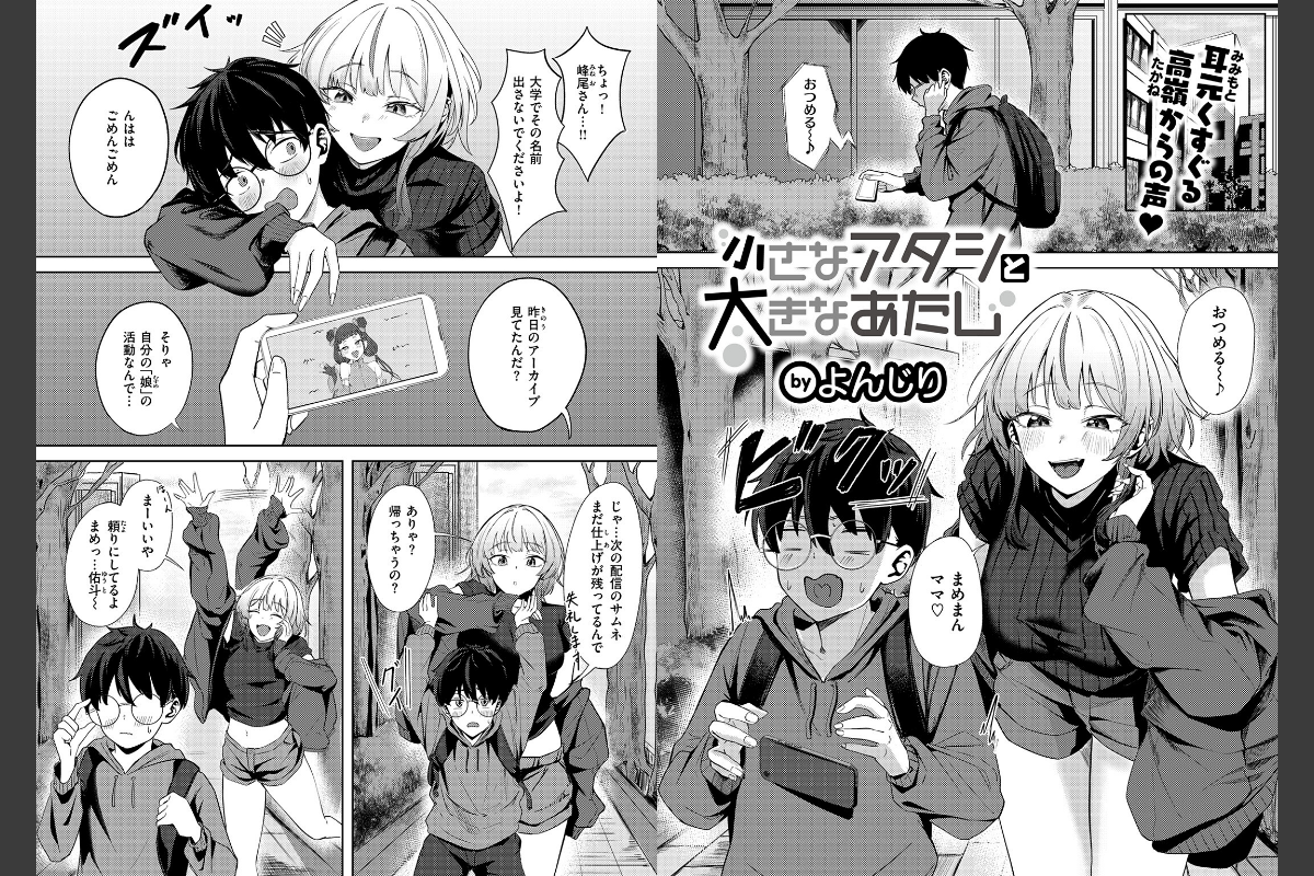 ミニ系Vライバー・メルの中の人は高身長女子の峰尾(みねお)さん。そのことを知っているのは、大学の同級生でメルの絵師でもある「まめまんママ」こと佑斗(ゆうと)だけ。佑斗の部屋に入り浸ってイラストの進捗を見守る峰尾さんは、いつもエッチなイタズラを仕掛けてきて……。