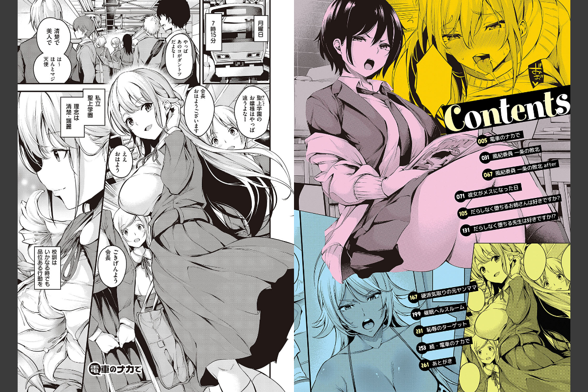 メス便器、イロエロ揃ってます♪お堅い風紀委員長も、男勝りな性悪女も、性に潔癖な女教師も、硬派なヤンママも…メスは全員、オスを気持ちよくするためのイキモノなんです♪痴●、レ●プ、催●…合計260ページ超えのむっちりボリュームで、10作品10色の快楽堕ち☆さらに!! デジタル特装版限定で、計22ページ、2作品を特別収録☆色欲に染まる肉感オトメ絵師・なしぱすたが贈る、待望のGOT初単行本!!【収録作品】『電車のナカで』『続・電車のナカで』(カラーコミック!)お嬢様学園に通う清楚な生徒会長の結衣は、弱みを握られ一週間痴●行為を受けることになってしまう。電車の中での潮吹き、素股、おもちゃプレイ、さらにはコートの下に隠したエロ下着姿の痴女ルックな結衣は必見です!『風紀委員 一条の敗北』『風紀委員 一条の敗北 after』乱れた風紀が大嫌いなお堅い風紀委員・一条は、転校してきたチャラ男・瀬戸に大敗北!! その日から一条は、校内セックスを強いられて――。バイブを突っ込まれ、即挿入、乳首責め、セーラーコスプレで絶頂アクメ! その後は、複数人に囲まれて…♪『彼女がメスになった日』クラスのボーイッシュな不良女・七瀬の横暴に耐えかねた宮原は、七瀬の裸を写真におさめ、写真を消すことを条件に「1週間カラダを好きにさせること」を約束させるけどーー。爆乳を好き放題揉みしだかれ、ネコ耳姿でガニ股騎乗位で連続イキ!!『だらしなく堕ちるお姉さんは好きですか?』妹にできた素行不良の彼氏から妹を守るため、妹の代わりに自らの体を差し出すクールな姉は、いつのまにか肉欲に溺れていく!トイレの中で妹にバレないように声を潜めて絶頂する強気な彼女は、土下座でち●ぽを懇願するまでに♪『だらしなく堕ちる先生は好きですか!?』性に潔癖な女教師は、淫行を注意した教え子たちから手首を拘束され、3Pでの快楽責めに遭ってしまう!拘束されながらクリを電マで責められる内に、アヘ顔ダブルピースで大絶頂!!!『硬派気取りの元ヤンママ』旦那とのセックスレスから欲求不満な元ヤン義母は、出来心で息子の精子付きパンツでオナニーしてしまう!そんな行為が息子にバレて、その豊満な褐色小麦肌ボディを好き放題!! 二穴挿入で完堕ち確定♪『催●ヘルスルーム』‘常識改変催●アプリ’で操られたメガネで真面目な保健室の先生は、知らぬうちに感じやすいカラダにされてしまい――。ローター、バイブを複数挿入され開発された体の疼きに、催●なしでも発情顔で自ら性器を拡げてオネダリして♪『恥辱のターゲット』特殊捜査官で勝ち気なレナは、媚薬を密造する小悪党に逆に捕らえられ、恥辱の限りを尽くされる!陥没乳首を吸い出された上、媚薬での強●キメセクに、M女丸出しでアヘ顔晒して肉便器宣言!『クラブアクティビティ』☆デジタル特装版限定収録! (カラーコミック!)科学部を廃部にしよう画策する生徒会長は、部員に媚薬を飲まされ、アナルに極太バイブを突っ込まれ、その凄まじい感覚に自ら快楽を求め始める…!カラーで描かれる汁感描写が見どころです♪『快楽ヒロインミリア』☆デジタル特装版限定収録!政府の治安機構であるミリアは、怪人に捕らわれ、突起がついた極太ペニスで容赦なく辱めを受けることになり――。触手ち●ぽで全身辱められるミリアは、2穴挿入で膣やアナルをガバガバにされながら、自ら膣を拡げて怪人の精液をおねだりして妊娠してしまう!