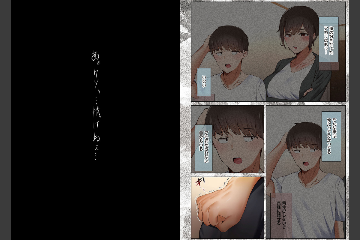 「さよなら、大好きだった貴方…。」男友達のように親しみやすい巨乳JD・アカリは昔から仲のいい幼馴染だ。そんなある日、俺の友人でありヤリチン・りょうに誘われた飲み会にアカリも参加することに。りょうとの出会いから徐々に‘オンナ’に変わっていくアカリは、徐々に俺とは疎遠になってしまった。彼女の変化に絶望し、生きる気力を失った俺の目の前に元凶であるりょうが現れる。「あの時の飲み会……もう一度やり直さないか?」全てが狂い始めたあの日に戻り、好きだったアカリを取り戻すことはできるのか――!?FANZA同人で大人気のNTRシリーズついに姦動のフィナーレへ!!さらに両思いJKとの性春NTRを描いた『僕らは日陰者』も収録した、寝取られの最俊英・うぶおがフルカラーで贈る2nd単行本がついに発売!〈収録作品〉男友達のような俺の幼馴染が、ヤリチンによってメスにさせられる話。(3)僕らは日陰者FANZA限定特典として描き下ろしカラーイラストを収録!