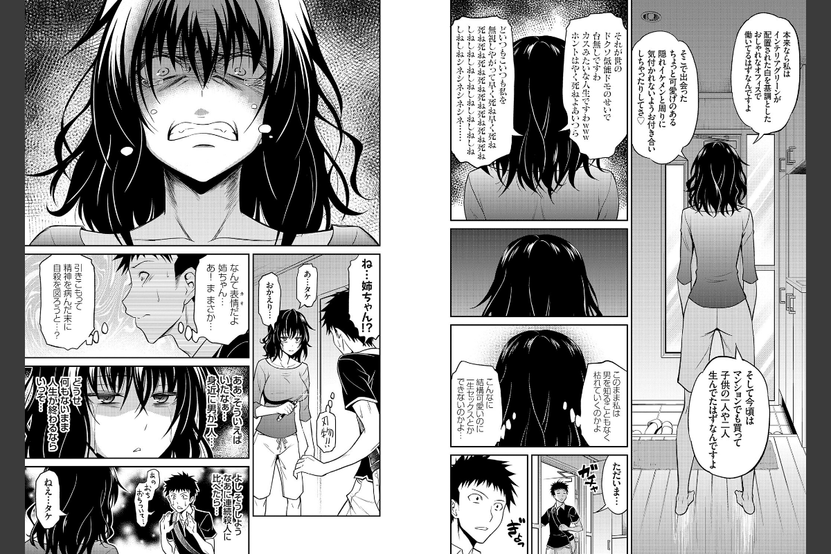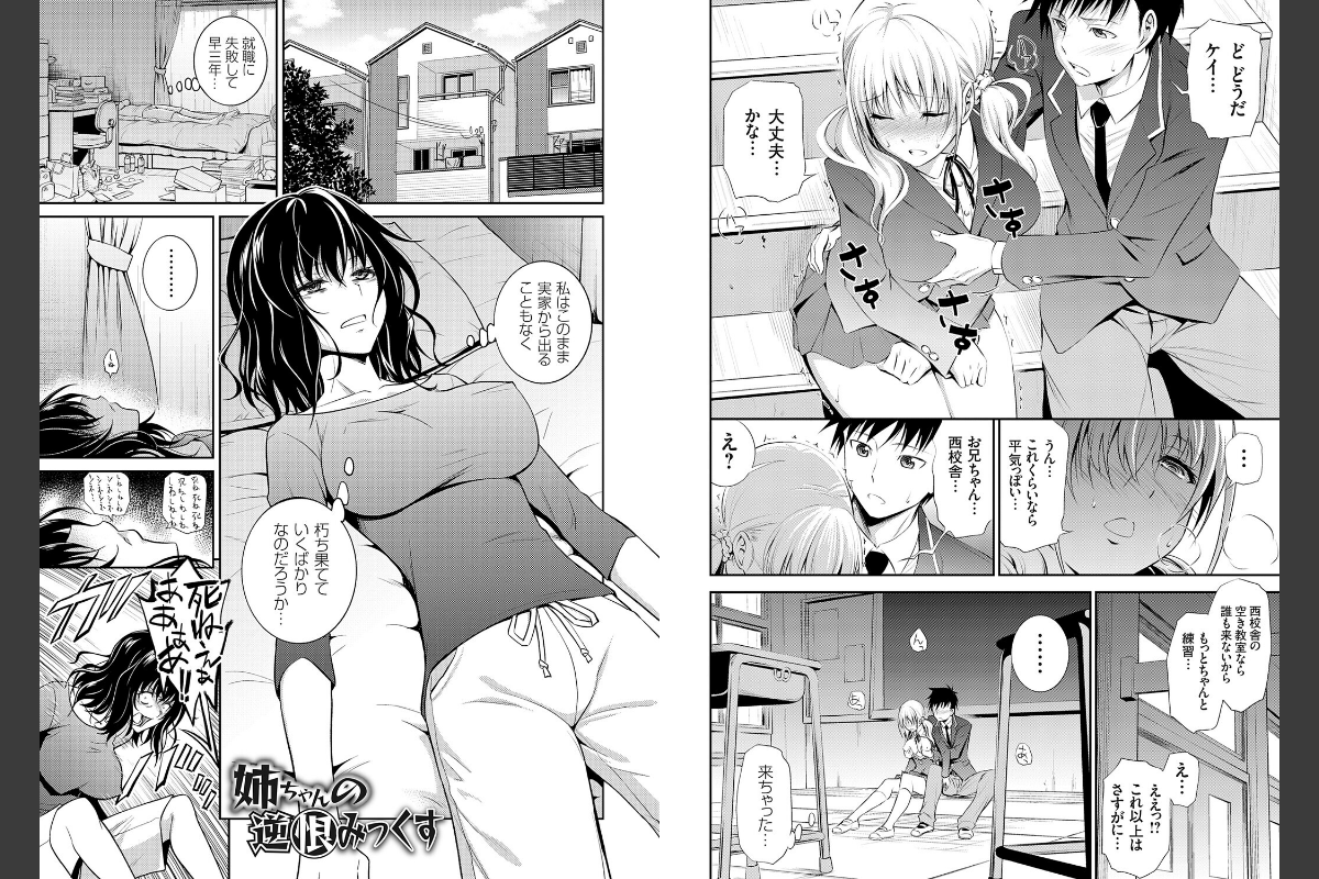 エキセントリックラブエロコメディの奇才が混沌とした時代を姉と妹で明るく照らす、青木幹治12年ぶり待望の最新コミックス!!「くそっ なんでこの私が無職なんだ、偏差値70だったこの私がぁ!!!」SNS界隈を賑わせた、こじらせ高学歴姉が弟で処女喪失を企む代表作『姉ちゃんの逆恨みっくす』を筆頭に、男性恐怖症ブラコン妹、超絶天然系スキンシップ姉、性欲暴走系ツンデレ妹etc…十人十色な性癖の姉5人と妹5人が、時に優しく時に激しく時に狡猾に、兄と弟を求め激しく絡み合う近親エロコメ読み切り10本+単行本用描き下ろし漫画1本を収録!全国の姉スキー&妹スキーに贈る渾身の1冊!!!!!!【収録作品】『法的に問題ない姉との関係』『妹レッスン』『姉ちゃんの逆恨みっくす』『妹のイイワケ』『姉がしばしば艶っぽいカオをするので、とてもドギマギする』『兄妹の秘密の巣』『快速 姉の好奇心』『妹の物欲しげな視線』『妹の進路に連れ込まれ』『姉のべろちゅー』『姉のべろちゅー その後』(モノクロ描き下ろし)FANZA限定特典として、描き下ろしイラストを追加収録!!