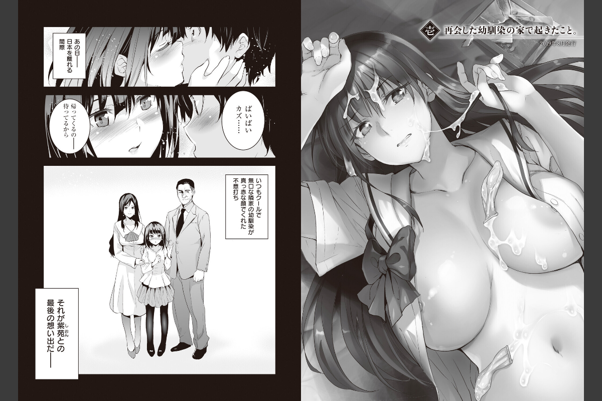 家の都合で引っ越すことになり、離れ離れになった幼馴染の紫苑とカズ。五年ぶりに日本に帰国することになり再会した紫苑は、昔と変わらずクールだがおっぱいも大きく美しく成長していた。カズは積年の想いを紫苑に伝えようとするが、会えなかった五年の間に紫苑の家庭は崩壊しており、今では紫苑は父の勝手な性欲をぶつけられる『仲良し』が日常となっていた…。想いを寄せていた幼馴染との再会を喜ぶ裏で、父は今日もカズとの交流をダシに紫苑との『仲良し』を迫るーー。とある少女に起きた青春と光と闇を描いた、著者の大人気オリジナルシリーズを待望の商業書籍化!希望と絶望の交錯でぐちゃぐちゃになった少女の感情が紡ぎ出す、実用度満点ハードエロスの一冊!!さらにデジタル特装版では秘蔵イラストラフ集が特別収録!見逃せない紫苑の痴態がここに!!犬江しんすけさんのサークル『ジンガイマキョウ』の同人作品はコチラから!