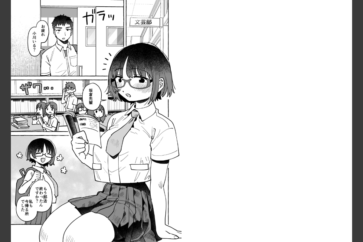 地味な眼鏡女子・小川と、バレー部の主将・板倉は初体験を済ませたばかりの●●●カップル。初体験ではイかせられなかった彼女を次こそイかせまくる!!!むっつりスケベな彼女と、和室の寝室でじっとりイチャラブセックス!「先輩……えっちってこんなに気持ちいいんですね……」乳首責め、パイズリ、正常位、バック、寝バック等が収録されています。31ページ
