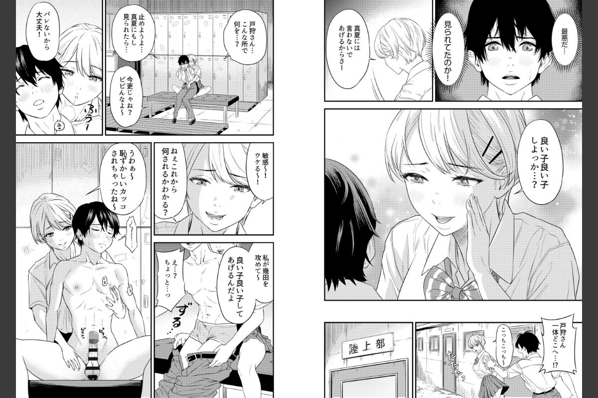 ★1話まるごと立ち読み付き! さらに描き下ろし漫画など、FANZA特装版特典を特別収録!!★幼馴染の真夏と交際している義也は可愛い彼女と部活に勉強!順風満帆な学生生活を送っていたが、一方真夏との初S〇Xが不発に終わり、落ち込んでいた…。そこに現れたのがクラスメイトの戸狩。彼女は真夏は正反対のまさに陽キャなギャル!しかもなぜか、どことなくエロい…!距離の詰め方や接し方が大胆でいつもドキドキする…。可愛い大好きな彼女がいるのに、戸狩さんの事を考えるとエッチな妄想が止まらない…。今日も股間が熱くなってる。そんな義也の姿を見つけた戸狩は優しく微笑みかけながら、突然、義也の股間を触り始める。驚く義也だったが、戸狩はいっこうにやめる気配なし。遂にはズボンのベルトに手をかけ、ゆっくりと脱がすとそこにはガチガチに硬くなった義也の肉棒があらわれた。『これからもっと恥ずかしいことしちゃうから…』そういうと義也の肉棒に優しく手をかけ、ゆっくりと上下に動かしていく…戸狩のペースにはまっていく義也!戸狩の痴女の性癖と義也のMの性癖がどんどんリンクしてしまい…<収録内容>・痴女リズム 第1話〜第6話★FANZA特装版限定!★・表紙イラスト・ラフ・登場キャラクターデザイン・第1話ネーム ・第1話下書き ・描き下ろし漫画8ページここでしか読むことのできない作品を、ぜひご覧あれ。【※本作品は、「痴女リズム」話売り作品の電子単行本版です。重複購入にご注意ください。】