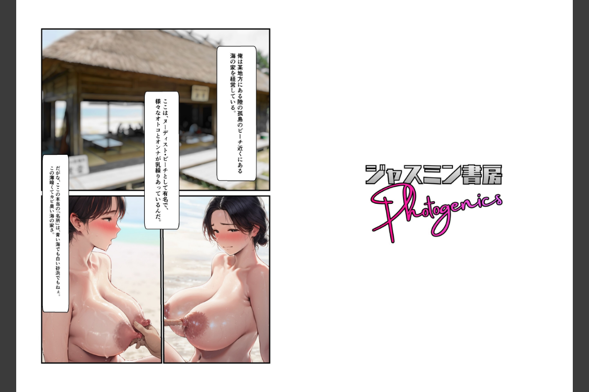 退屈な日常に息苦しさを感じる上品な人妻たち。冷え切った夫婦生活、満たされない夜……。そんな彼女たちが密かに辿り着くのは、陸の孤島にひっそりと佇む、ある海の家だった。表向きは「ヌーディスト・ビーチ」として知られるこの場所。青い海、白い砂浜……だが、本当の「名所」は、薄暗くカビ臭いその休憩所の中にある。海で鍛えられた強靭な腰と、濃厚で生命力溢れる「種」を持つ男たちに、上品な仮面を剥がされ、理性ごと壊されていく人妻たちの姿。最初は恥じらい、タオルで隠していた体が、節くれだった指でオイルを塗り込まれ、秘所を執拗にほじくり回され……やがて目がトロンと蕩け、太ももが小刻みに震え、透明な飛沫が西日にキラキラと弧を描いて飛び散る。古くから「孕み磯」と呼ばれたこの入り江。江戸の頃から伝わる因習――外から来た女の腹に、地元の強い種を注ぎ込むことを、海自身が望んでいるという。「ここに行けば、石女も孕む」そんな噂を聞きつけ、基礎体温を測り、アプリで危険日を狙いすましてやってくる女たち。彼女たちは遊びに来たのではない。本気で「子宝」を、野蛮な快楽を、求めに来ているのだ。ここは、都会で疲弊した女たちが、獣の本能を解放し、若さも寿命も、精気もすべて根こそぎ吸い尽くす、秘密の「補給所」であり、「種付け」の聖地。一度味わえば、もう普通の夜には戻れない。ジャスミン書房フォトジェニックスは、ビジュアルで魅せて、文字で読ませることをコンセプトにした、大人向けフルカラーレーベルです。「イラスト集のように眺めて楽しめる」と同時に、「官能小説のように、言葉で想像をかき立てる」──その両方を一冊の中で味わえる電子コミックシリーズです。ビジュアルで惹きつけ、言葉で深く沈める。ビジュアル重視の方にも、物語性を重んじる方にも楽しめる’大人の読書体験’をお届けします。